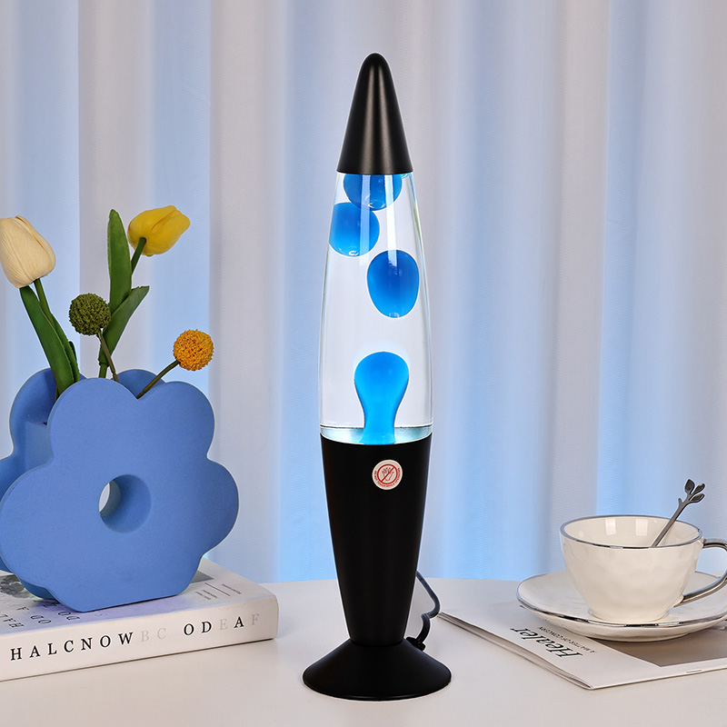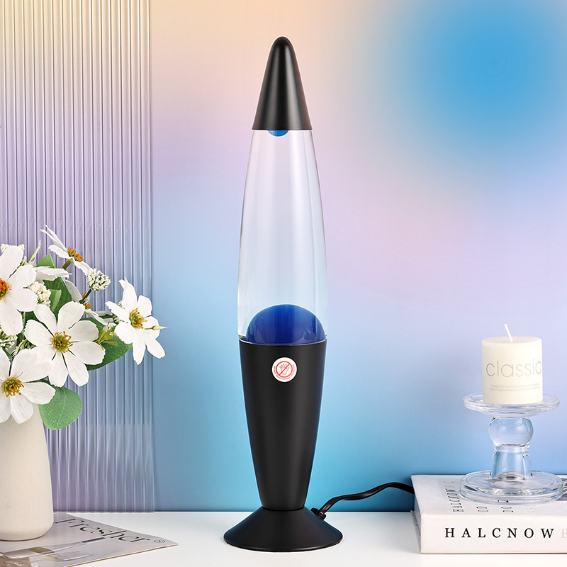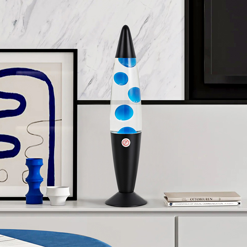 16 இன்ச் பிளாக் ஷேட் ப்ளூ லாவா லேம்ப் என்பது ஹைட் பவர் பிளக் இன். ஊதா ஊதா அலுமினிய ஷெல், ஊதா மெழுகு, எரியும் போது, தூய ஊதா மெழுகு விளக்கு.