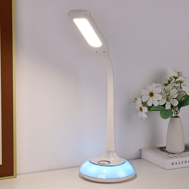 RGB தளத்துடன் கூடிய CCT LED டெஸ்க் விளக்கு வட்ட வடிவ அடித்தளம், 5000K தரவு கொண்ட வெள்ளை ஒளி