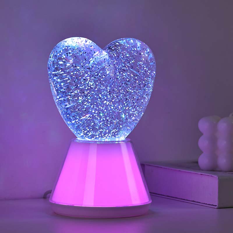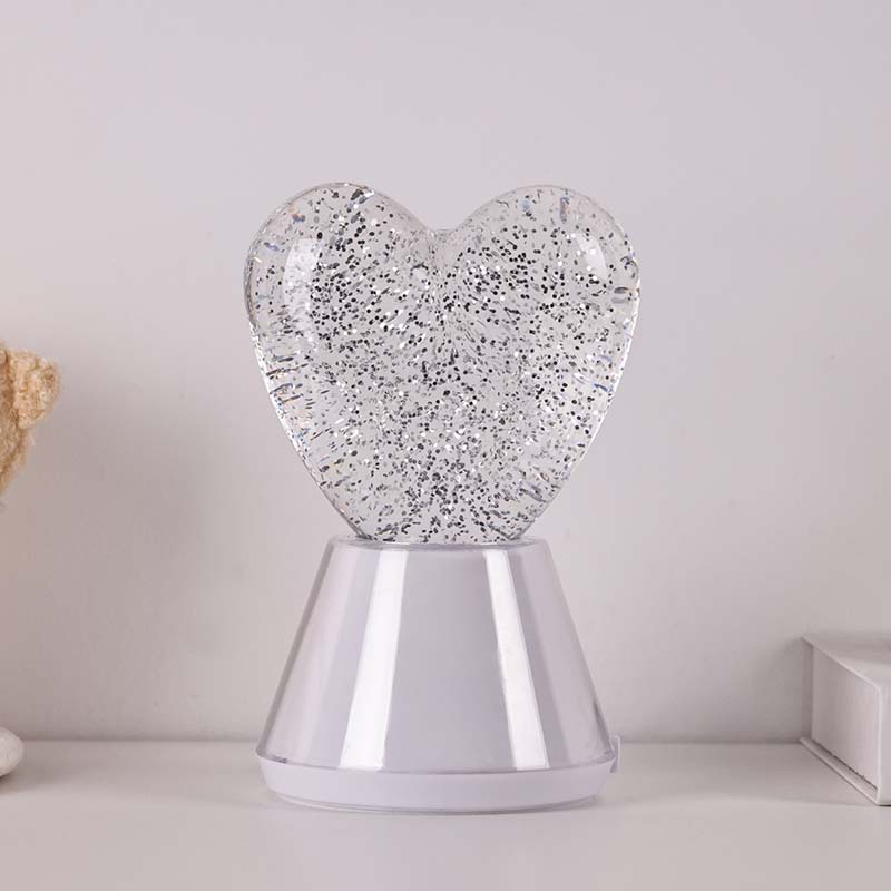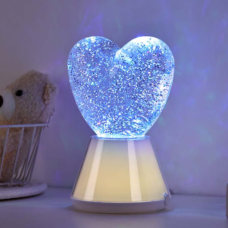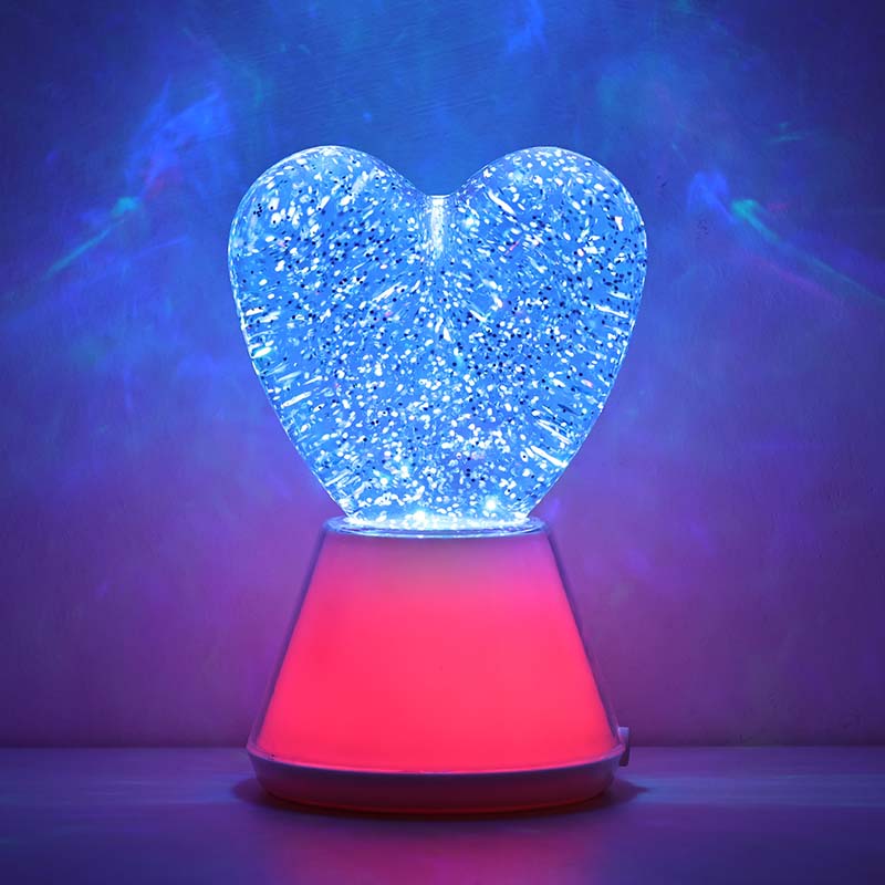 இதய நிழலுடன் நிறத்தை மாற்றும் திரவ மினுமினுப்பு இரவு ஒளி. ஒரு மர்மமான திரவத்தால் நிரப்பப்பட்ட ஒரு நேர்த்தியான கண்ணாடி பந்தைக் கொண்டுள்ளது, அதில் மின்னும் சீக்வின்கள் மிதக்கின்றன. அதிசயமாக, மாயாஜால உலகில் நடனமாடுவது போல், நிறத்தை மாற்றும் திரவ மினுமினுப்பு இரவு ஒளி.