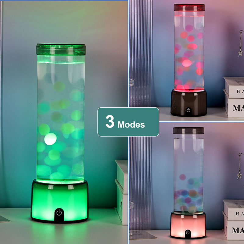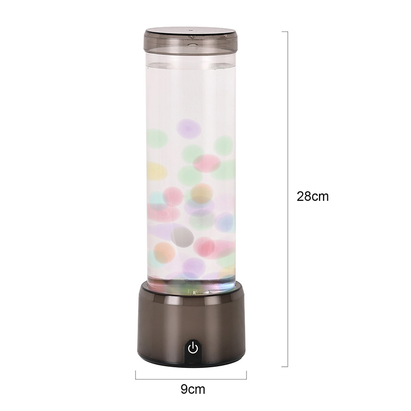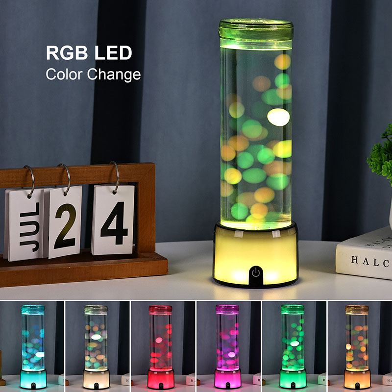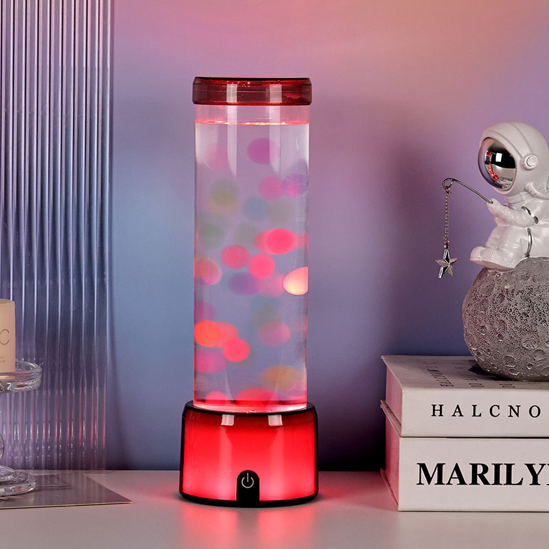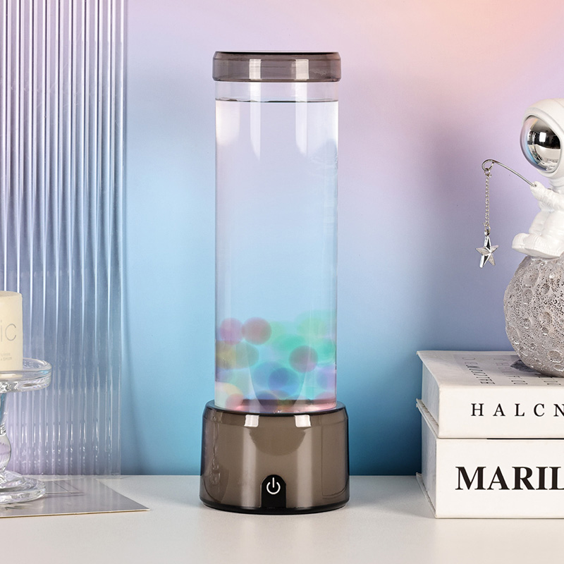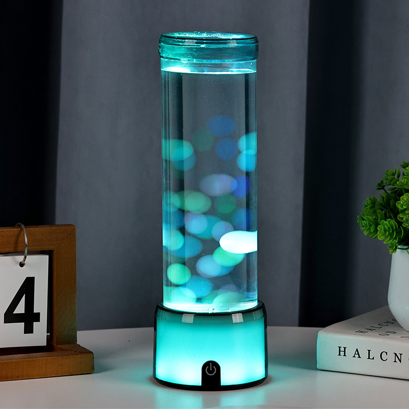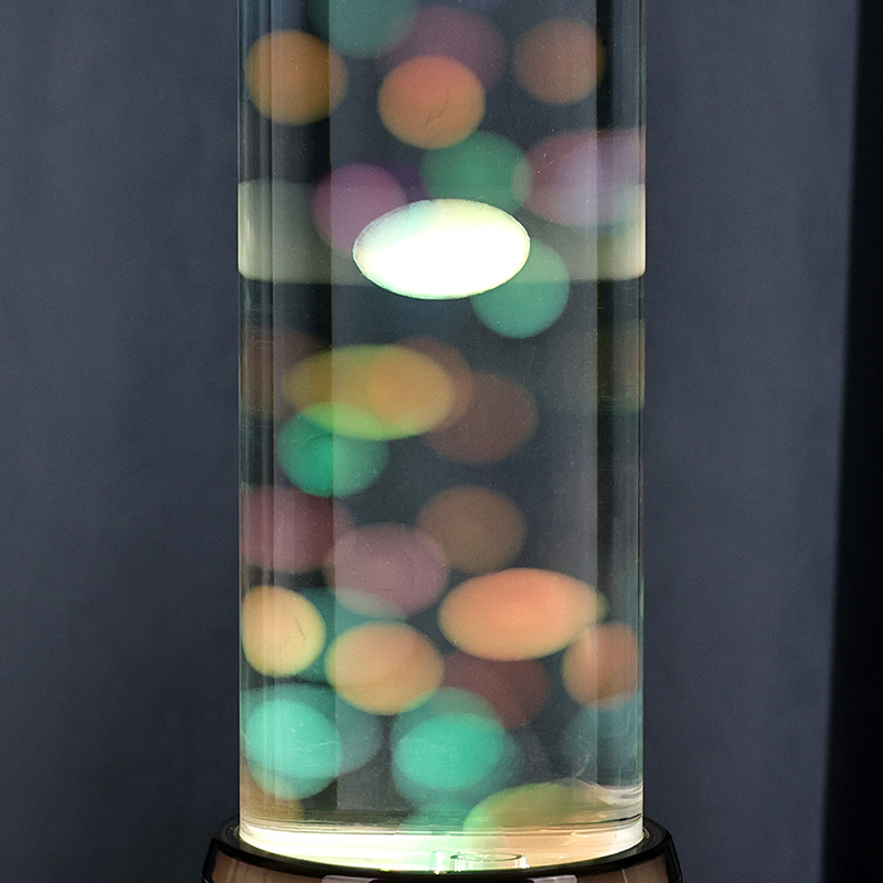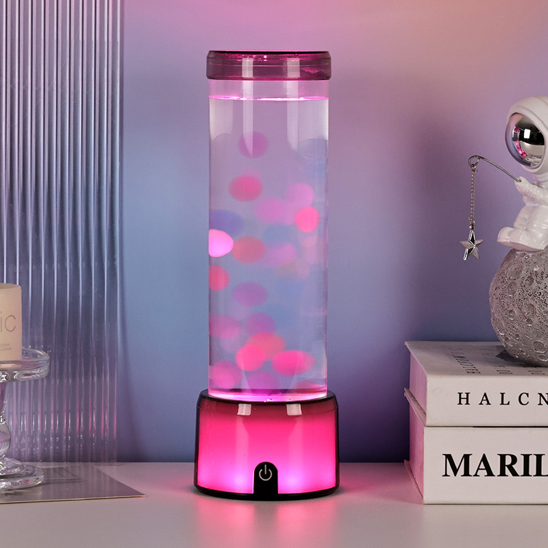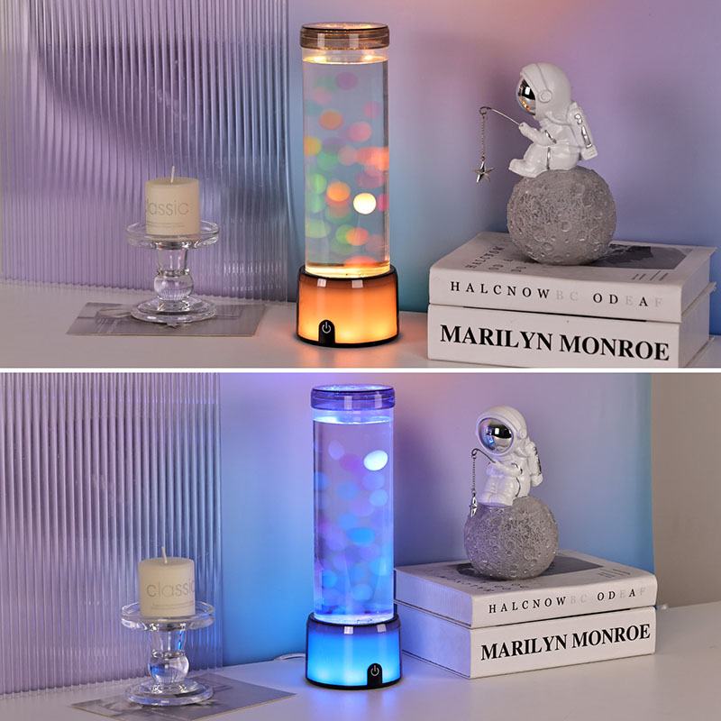 விளக்கின் உயரமான, நேர்த்தியான சிலிண்டர் வடிவம், பல்வேறு உள்துறை பாணிகளை நிறைவு செய்யும் நவீன, குறைந்தபட்ச தோற்றத்தை அளிக்கிறது. அதன் வெளிப்படையான உடல், மிதக்கும் ஜெல்லிமீன்கள் மற்றும் மின்னும் ஒளி பிரதிபலிப்புகள் உட்பட உள் உறுப்புகளின் முழுத் தெரிவுநிலையை அனுமதிக்கிறது. உள்ளே இருக்கும் திரவமானது நீர் ஓட்டத்தை உருவகப்படுத்துவதற்காக சிறப்பாக வடிவமைக்கப்பட்டு, மிதக்கும் இயக்கத்தின் யதார்த்தத்தை மேம்படுத்துகிறது. எல்இடிகள் வண்ணங்களை மாற்றும்போது, ஜெல்லிமீன்கள் உயிருடன் துடிப்பது போல் காட்சிக்கு ஆழத்தையும் இயக்கத்தையும் சேர்க்கிறது.