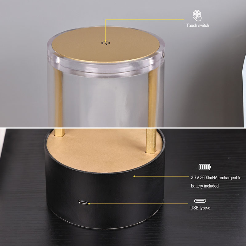 லான்டர்ன் ஸ்டைல் ஸ்மால் டேபிள் லேம்ப்பின் மேற்பகுதி டச் சென்சிட்டிவ் லைட் ஸ்விட்ச் ஆகும், கீழே டைப்-சி ரிச்சார்ஜபிள் சார்ஜிங் ஹெட் உள்ளது. மேல் ஒரு வெளிப்படையான அக்ரிலிக் கவர் கொண்டது, மற்றும் கீழே ஒரு உலோக அடிப்படை உள்ளது. ஒட்டுமொத்த வட்ட அமைப்பு அசையும் விளக்குகளை அனுமதிக்கிறது