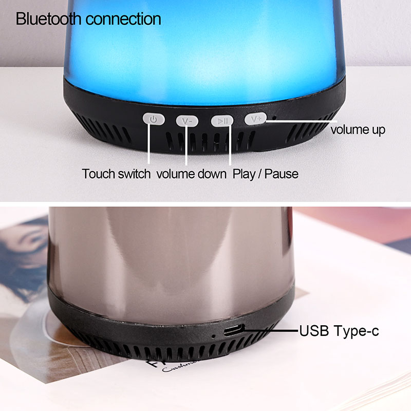இந்த விளக்கின் மையத்தில் இளஞ்சிவப்பு, ஊதா, நீலம், பச்சை, மஞ்சள் மற்றும் பல வண்ணங்களின் நிறமாலையில் மென்மையான, கதிரியக்க ஒளியை வெளியிடும் வண்ணத்தை மாற்றும் LED தளம் உள்ளது. ஒளி படிப்படியாக இடையில் மாறுகிறது