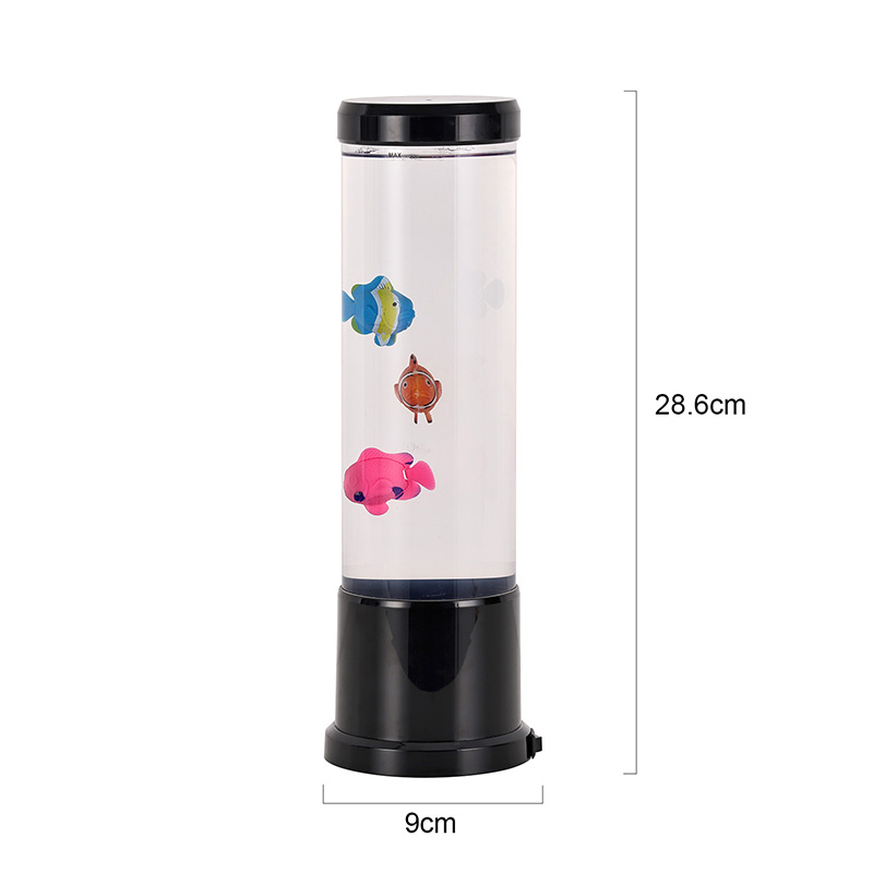 உட்புற திரவமானது தண்ணீரின் இயற்கையான ஓட்டத்தை பிரதிபலிக்கும் வகையில் சிறப்பாக வடிவமைக்கப்பட்டுள்ளது, இது மீன் மற்றும் ஜெல்லிமீன்களை மெதுவாக நகர்த்த அனுமதிக்கிறது, இது உயிரோட்டமான தோற்றத்தை மேம்படுத்துகிறது. இந்த இயக்கம், மாறும் எல்இடி வண்ணங்களுடன் இணைந்து, தொடர்ந்து உருவாகி வரும் காட்சியை வழங்குகிறது, அது மீண்டும் மீண்டும் தோன்றாது.