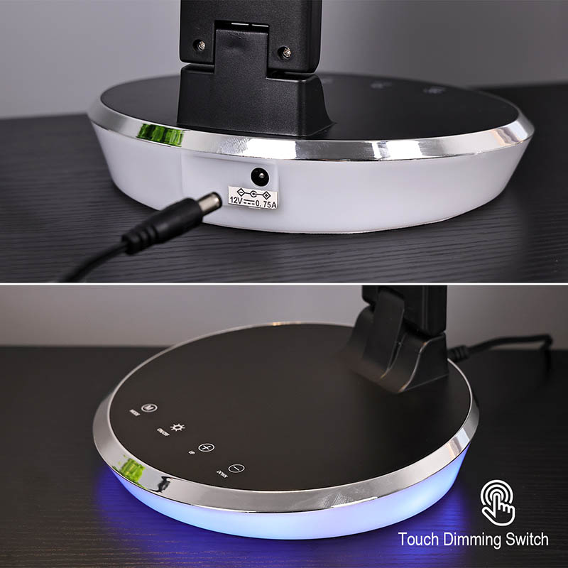 விளக்கின் தலை மற்றும் அடிப்பகுதி மடிப்பதற்கு வடிவமைக்கப்பட்டுள்ளது, பயன்பாட்டில் இல்லாத போது எடுத்துச் செல்வதையும் சேமிப்பதையும் எளிதாக்குகிறது. இந்த அம்சம் நீங்கள் படிக்கும் போதும், எழுதும் போதும் அல்லது கணினியில் பணிபுரியும் போதும், உங்கள் தேவைகளுக்கு ஏற்ப ஒளியின் கோணத்தை சரிசெய்ய உங்களை அனுமதிக்கிறது.
