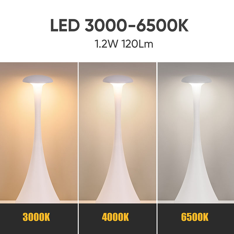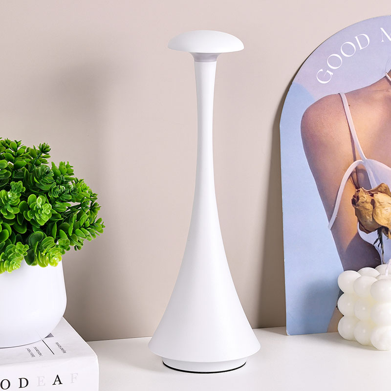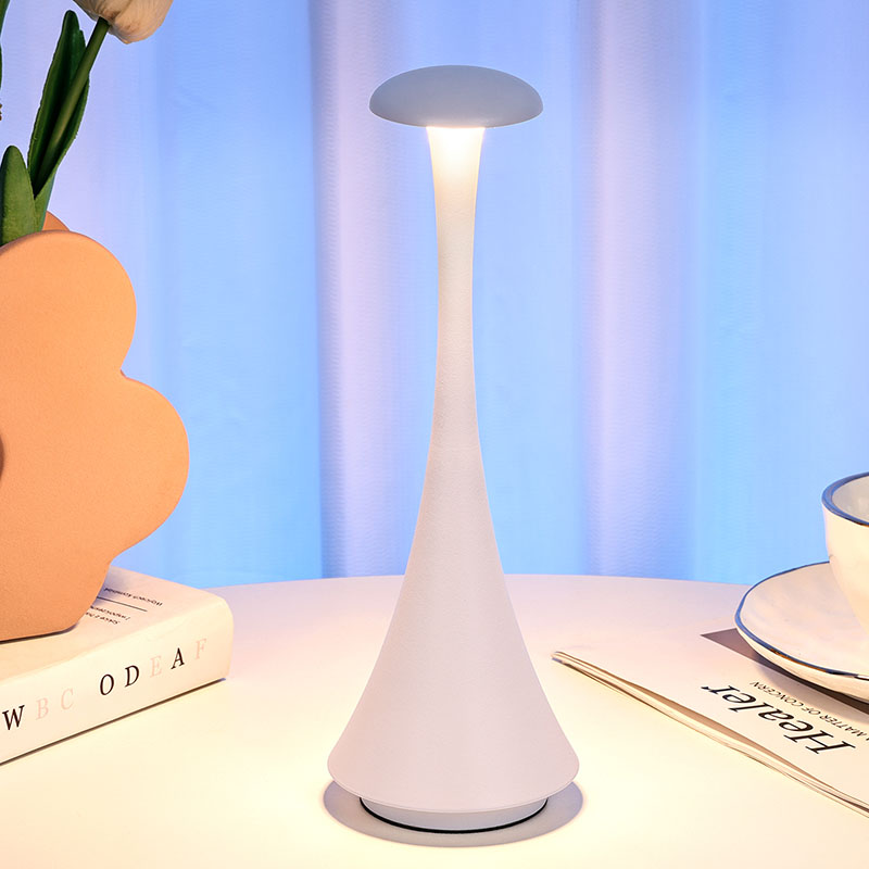 ரீசார்ஜ் செய்யக்கூடிய பேட்டரியுடன் புதிதாக வடிவமைக்கப்பட்ட LED மேசை விளக்கு காளான் நிழலில் ஒளியைக் கொண்டுள்ளது