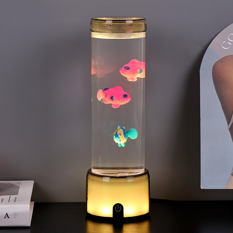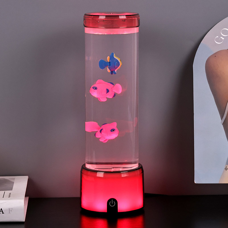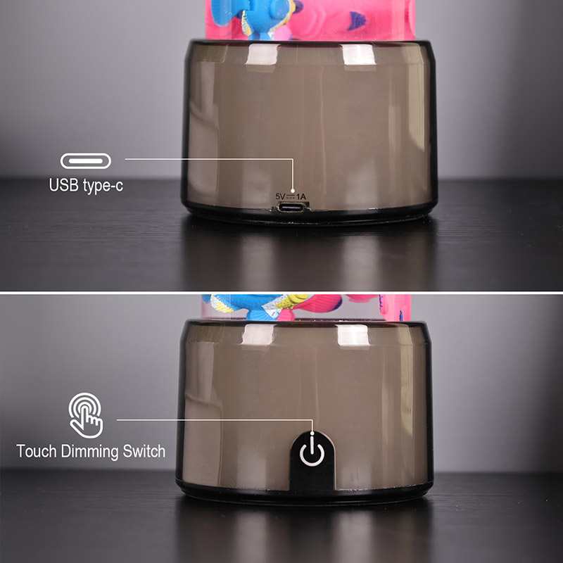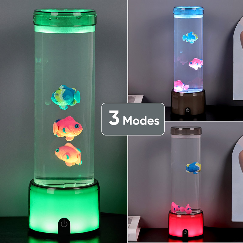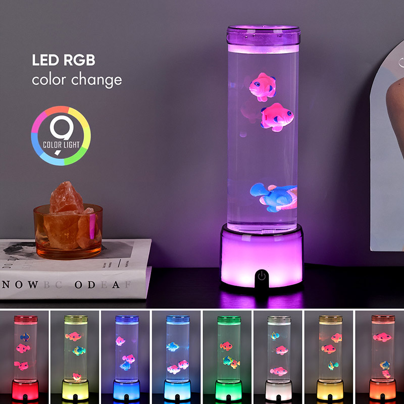 மீன் விளக்கின் அடிப்பகுதி RGB நிறத்தை மாற்றும் வெளிப்படையான தளத்துடன் பொருத்தப்பட்டுள்ளது, இது பல வண்ண ஒளியை வெளியிடும், முழு விளக்கு உடலும் வண்ணமயமான விளைவை அளிக்கிறது. சுவிட்சை இயக்கிய பின் வண்ணம்