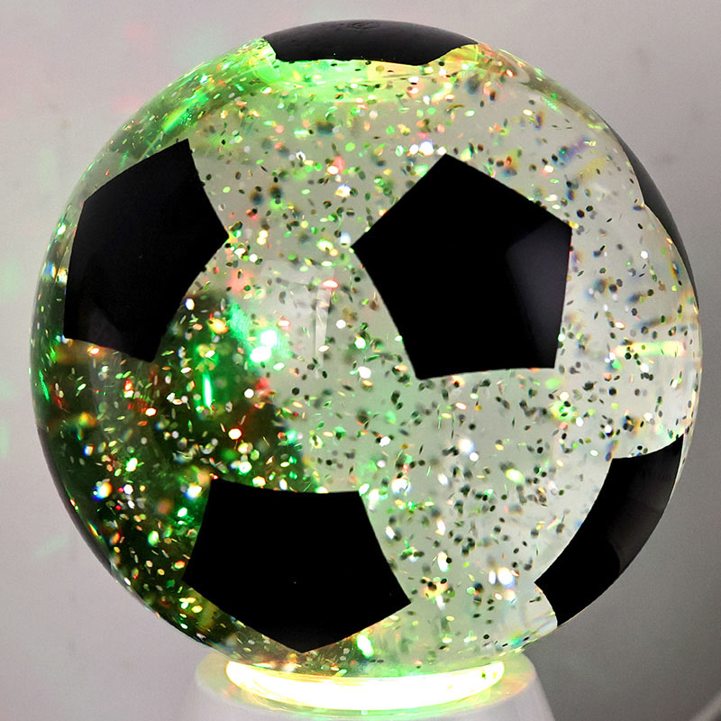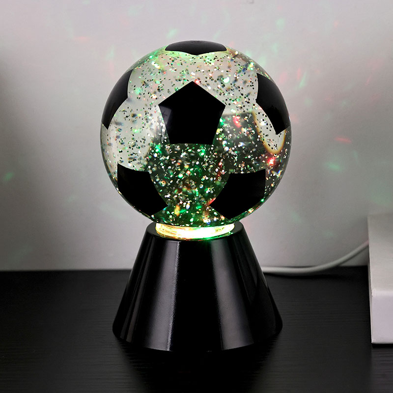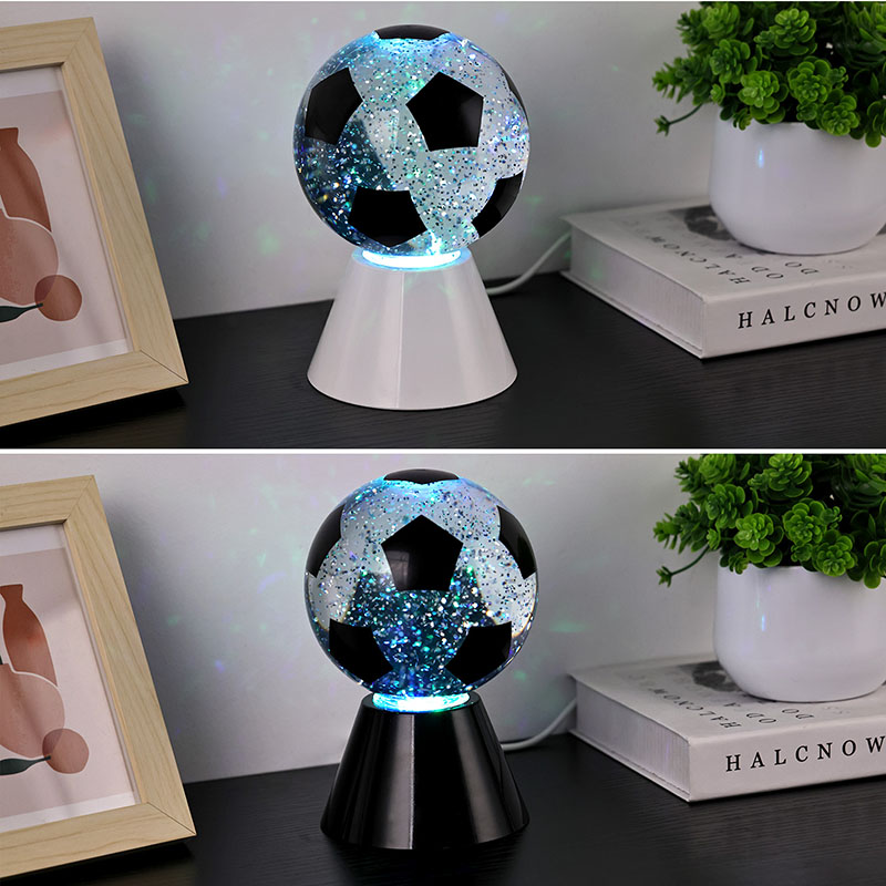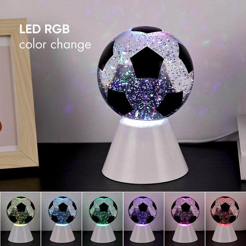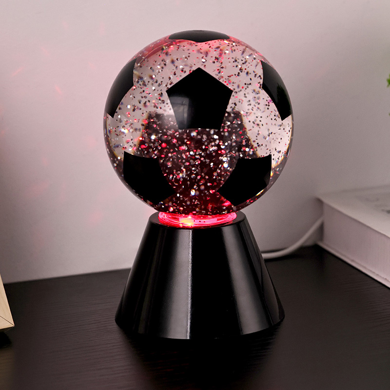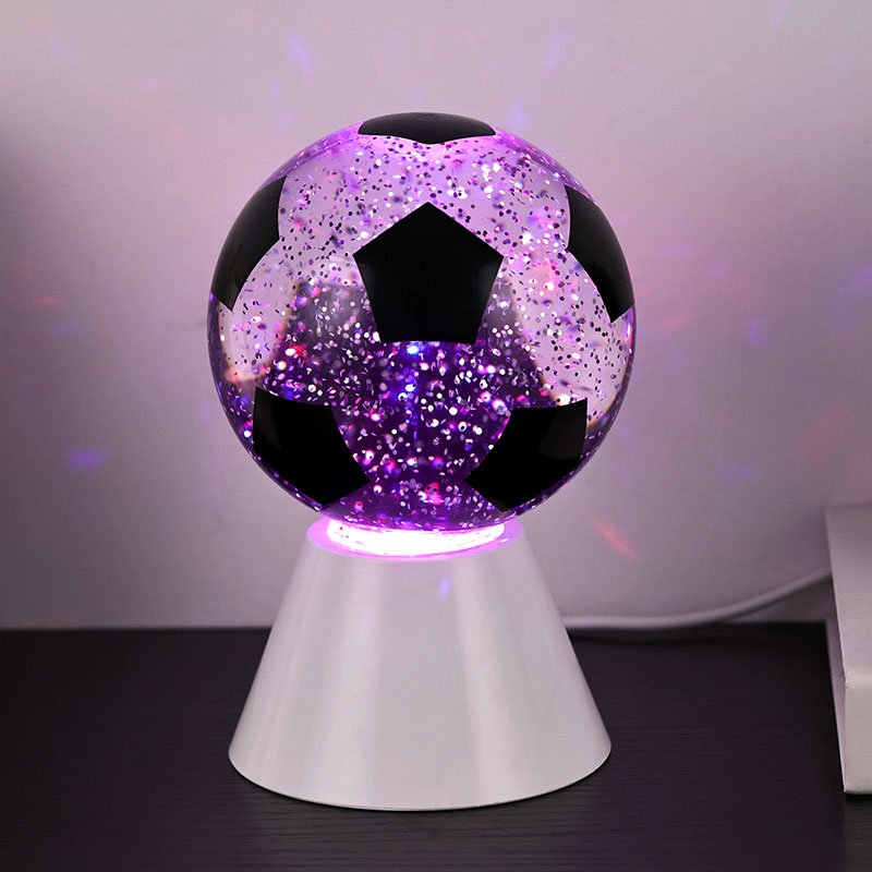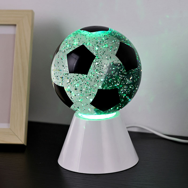 வெள்ளை + எல்இடி நிறம் மாறுகிறதுகோள வடிவிலான பரிசு ஒளியானது மேல் கண்ணாடி மற்றும் பிளாஸ்டிக் அடித்தளத்தால் ஆனது. கண்ணாடி மேற்பரப்பு கால்பந்து வடிவங்களுடன் அச்சிடப்பட்டுள்ளது, இது பல்வேறு வண்ணங்களில் அச்சிடப்படலாம். கால்பந்து நிழலுடன் நைட் லைட்டின் முக்கிய அம்சம் என்னவென்றால், கோளத்தின் உள்ளே திரவம் உள்ளது, அதில் சீக்வின்கள் உள்ளன. சுவிட்ச் இயக்கப்பட்ட பிறகு, உள்ளமைக்கப்பட்ட சிறிய மோட்டார் வேலை செய்யத் தொடங்குகிறது, மேலும் கண்ணாடிக்குள் இருக்கும் திரவம் ஒழுங்கற்ற முறையில் நகரும். அதே நேரத்தில், கால்பந்து நிழலுடன் நைட் லைட்டின் கீழ் ஒளி மாறத் தொடங்குகிறது, இது மிகவும் அழகாக இருக்கிறது. நைட் லைட் வித் ஃபுட்பால் ஷேட் முக்கியமாக உட்புற அலங்காரம், அறைகள், வாழ்க்கை அறைகள், ஹோட்டல் அறைகள் மற்றும் பிற இடங்களில் பயன்படுத்தப்படுகிறது, தயாரிப்பு USB சார்ஜிங்குடன் வருகிறது மற்றும் 3AAA பேட்டரிகளையும் பயன்படுத்தலாம்.
