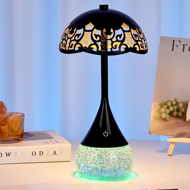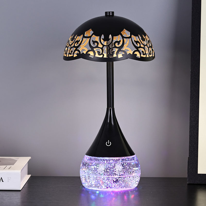 அடித்தளத்தின் உள்ளே, ஒரு தெளிவான பாட்டில் ஒரு திரவத்தை ஒழுங்கற்ற முறையில் நகர்த்தி, வசீகரிக்கும் காட்சி விளைவை உருவாக்குகிறது. குடை வடிவத்துடன் RGB வண்ண அடிப்படை எல்.ஈ.டி மேசை விளக்கு எந்த சாதாரண திரவமும் அல்ல; பளபளப்பான மற்றும் சுழற்சியின் மயக்கும் நடனத்தை உருவாக்க இது சிறப்பாக வடிவமைக்கப்பட்டுள்ளது. திரவம் நகரும்போது, இது எப்போதும் மாறிவரும் வடிவத்தில் ஒளியைப் பிரதிபலிக்கிறது, இது எப்போதும் உருவாகி வரும் காட்சி அனுபவத்தை உருவாக்குகிறது.