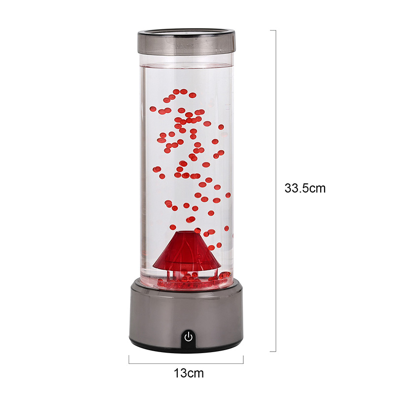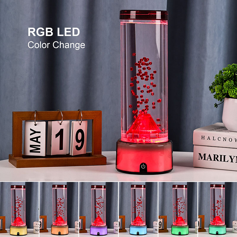 இந்த எரிமலை வடிவ எல்இடி விளக்கு, தெளிவான திரவம் மற்றும் மிதக்கும் சிவப்புத் துகள்களால் நிரப்பப்பட்ட உருளை வடிவ அறையைக் கொண்டுள்ளது, இது செயல்படுத்தப்படும்போது எரிமலை வெடிப்பை உருவகப்படுத்துகிறது. விளக்கின் அடிப்பகுதி துடிப்பான, நிறத்தை மாற்றும் RGB விளக்குகளுடன் ஒளிர்கிறது, அதே நேரத்தில் மத்திய எரிமலை அமைப்பு உமிழும் வெளிச்சத்துடன் துடிக்கிறது, இது உண்மையான வெடிப்பைப் பிரதிபலிக்கிறது. அதே நேரத்தில், மென்மையான ஜெல்லிமீன் போன்ற அலங்காரங்கள் திரவ நெடுவரிசைக்குள் அழகாக மிதக்கின்றன, இது ஒரு சர்ரியல் நீருக்கடியில் சூழலைச் சேர்க்கிறது. ஒன்றாக, இந்த கூறுகள் இயற்கையின் சக்தியை நவீன வடிவமைப்பின் நேர்த்தியுடன் இணைக்கும் ஒரு மயக்கும் காட்சியை உருவாக்குகின்றன. வடிவமைப்பு மற்றும் அழகியல் முறை RGB நிறத்தை மாற்றும் எரிமலை விளக்கு தோராயமாக 12 அங்குல உயரத்தில் உள்ளது, இது மேசைகள், நைட்ஸ்டாண்டுகள், அலமாரிகள் அல்லது படுக்கை அறைகள் அல்லது படுக்கை அறைகள் போன்றவற்றில் வைக்க ஏற்றதாக அமைகிறது. வகுப்பறைகள். அதன் நேர்த்தியான, நவீன நிழற்படமானது உயர்தர, உடைந்து போகாத பிளாஸ்டிக்கால் செய்யப்பட்ட ஒரு வெளிப்படையான உருளைக் குழாயைக் கொண்டுள்ளது, இது நீடித்துழைப்பு மற்றும் பாதுகாப்பை உறுதி செய்கிறது. கசிவைத் தடுக்க மேல் மூடி பாதுகாப்பாக சீல் வைக்கப்பட்டுள்ளது, அதே சமயம் அடித்தளமானது உள்ளமைக்கப்பட்ட கட்டுப்பாட்டுப் பலகத்துடன் மென்மையான, மேட்-ஃபினிஷ் செய்யப்பட்ட பிளாஸ்டிக்கிலிருந்து வடிவமைக்கப்பட்டுள்ளது.