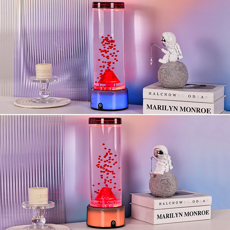 ஒரு தனித்துவமான அலங்காரப் பொருளாக, எரிமலை விளக்கு எந்த அறைக்கும் ஆளுமை மற்றும் அழகை சேர்க்கிறது. நெருப்பு மற்றும் நீர் கருப்பொருள்களின் கலவையானது நவீன, குறைந்தபட்ச அல்லது தேர்ந்தெடுக்கப்பட்ட உட்புறங்களில் இது ஒரு தனித்துவமான அம்சமாக அமைகிறது. புத்தக அலமாரிக்கு அருகில் ஒரு பக்க மேசையில் வைக்கவும் அல்லது ஒரு வசதியான வாசிப்புக்கு தாவரங்கள் மற்றும் புத்தகங்களுடன் இணைக்கவும்.