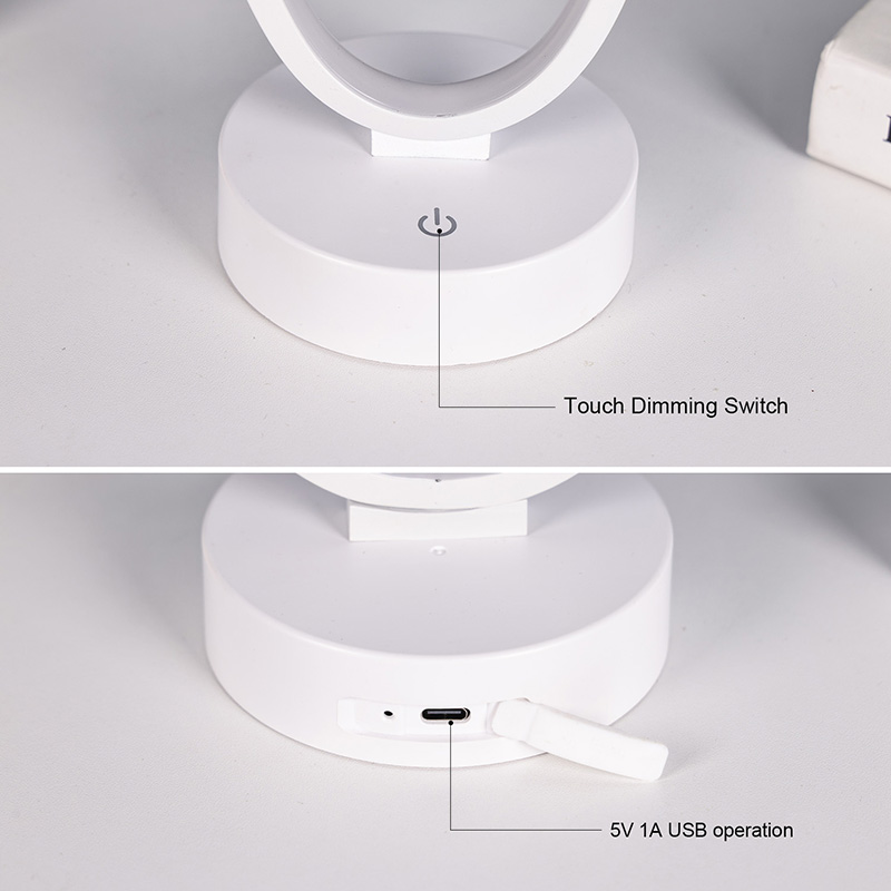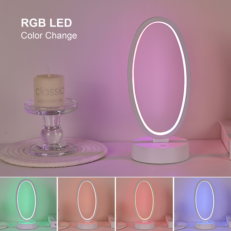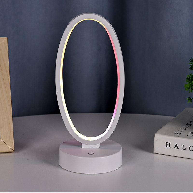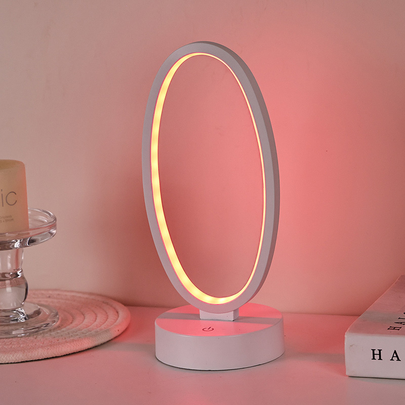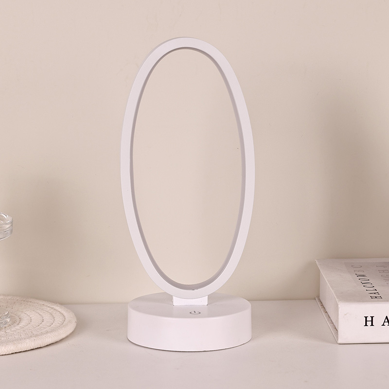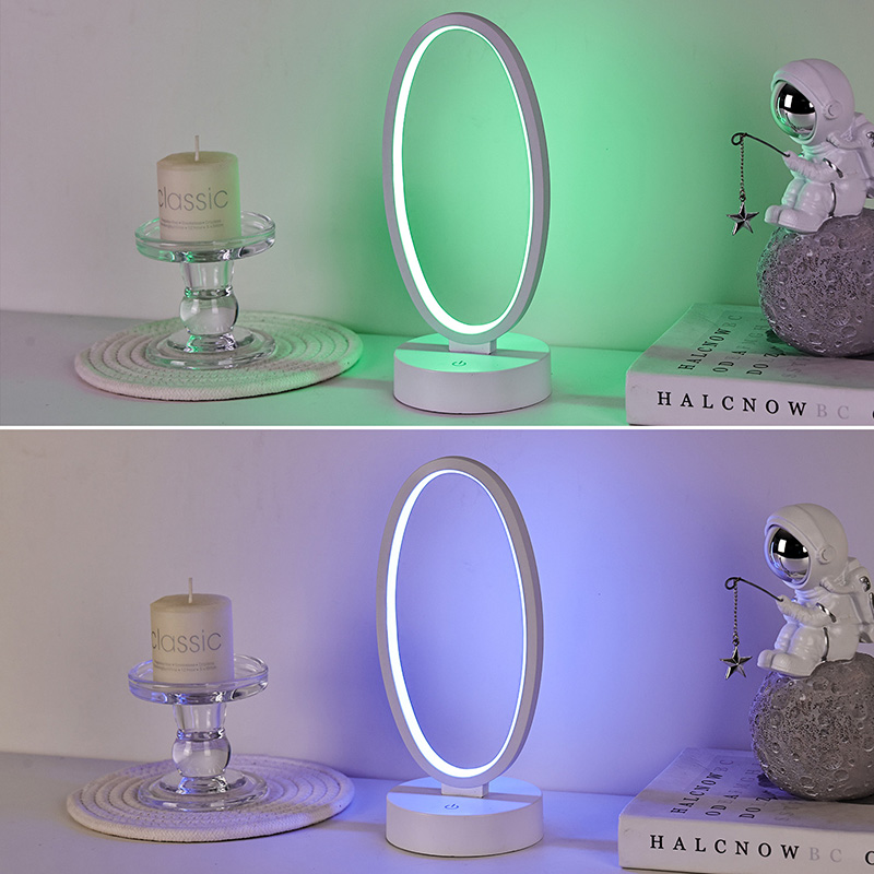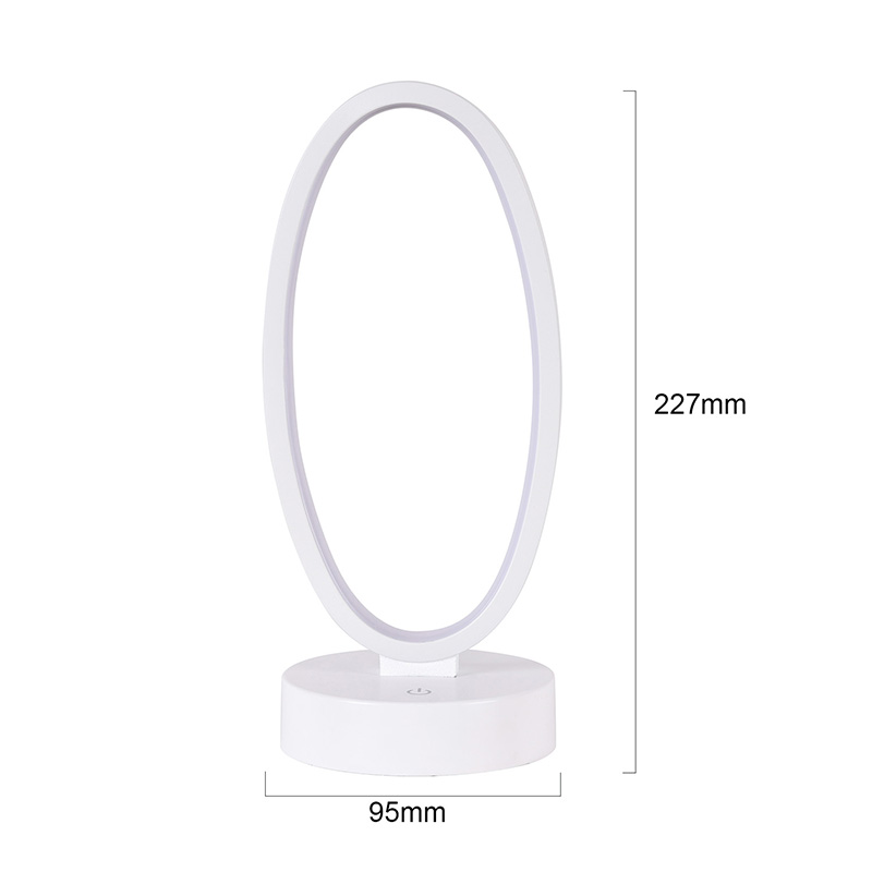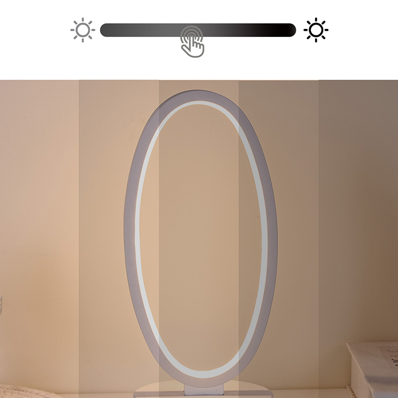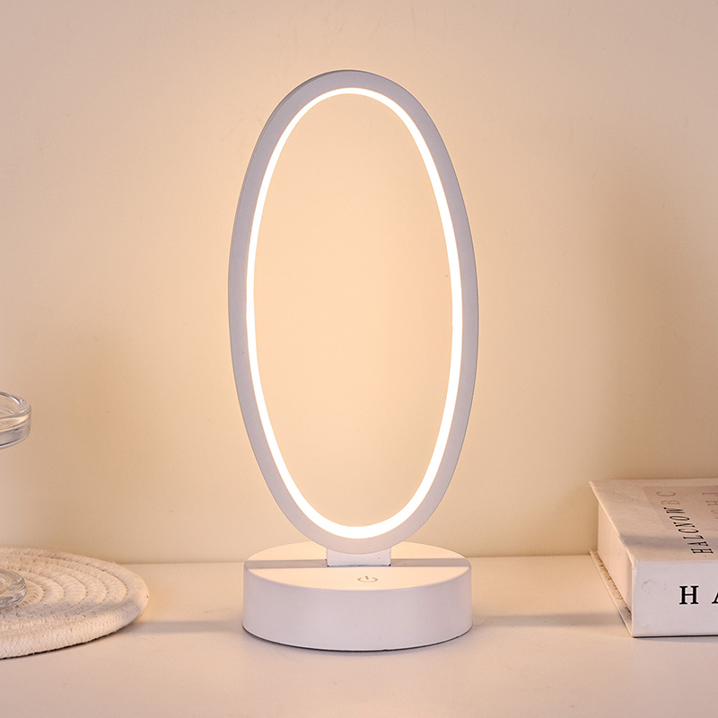 கச்சிதமான மற்றும் சக்திவாய்ந்த டேபிள் விளக்கு ஒரு மென்மையான-ஒளிரும் வளையத்துடன் குறைந்தபட்ச ஓவல் வடிவமைப்பைக் கொண்டுள்ளது.