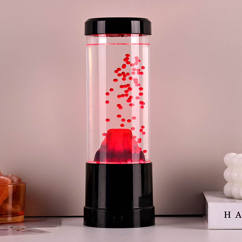 இரவு ஒளியின் மைய துண்டு ஒரு எரிமலை பள்ளத்தை ஒத்த ஒரு வெளிப்படையான நெடுவரிசை ஆகும். இந்த நெடுவரிசைக்குள், பூமியின் மேலோட்டத்திற்குள் ஓடும் உருகிய எரிமலை நினைவூட்டுகின்ற சிவப்பு கோளங்களின் துடிப்பான காட்சியைக் காண்பீர்கள். இந்த கோளங்கள் ஒரு தெளிவான திரவத்திற்குள் அழகாக மிதக்கின்றன, இது மாறும் மற்றும் எப்போதும் மாறிவரும் காட்சி விளைவை உருவாக்குகிறது. ஒளி பிரகாசிக்கும்போது, இது ஒரு சூடான மற்றும் அழைக்கும் பிரகாசத்தை வெளிப்படுத்துகிறது, இது எந்த அறையிலும் வசதியான சூழ்நிலையை அமைப்பதற்கு ஏற்றது.
