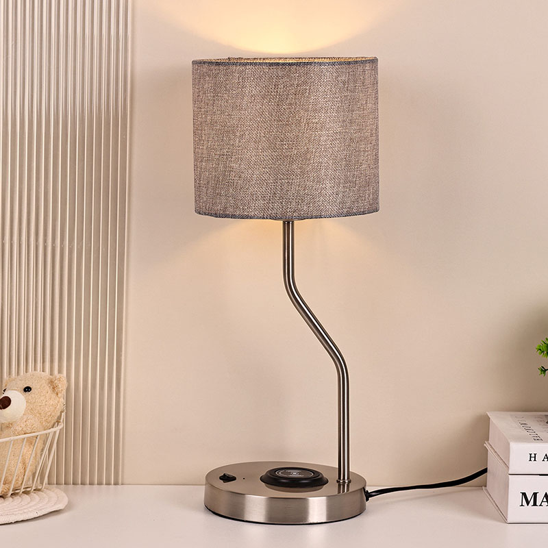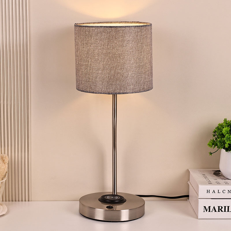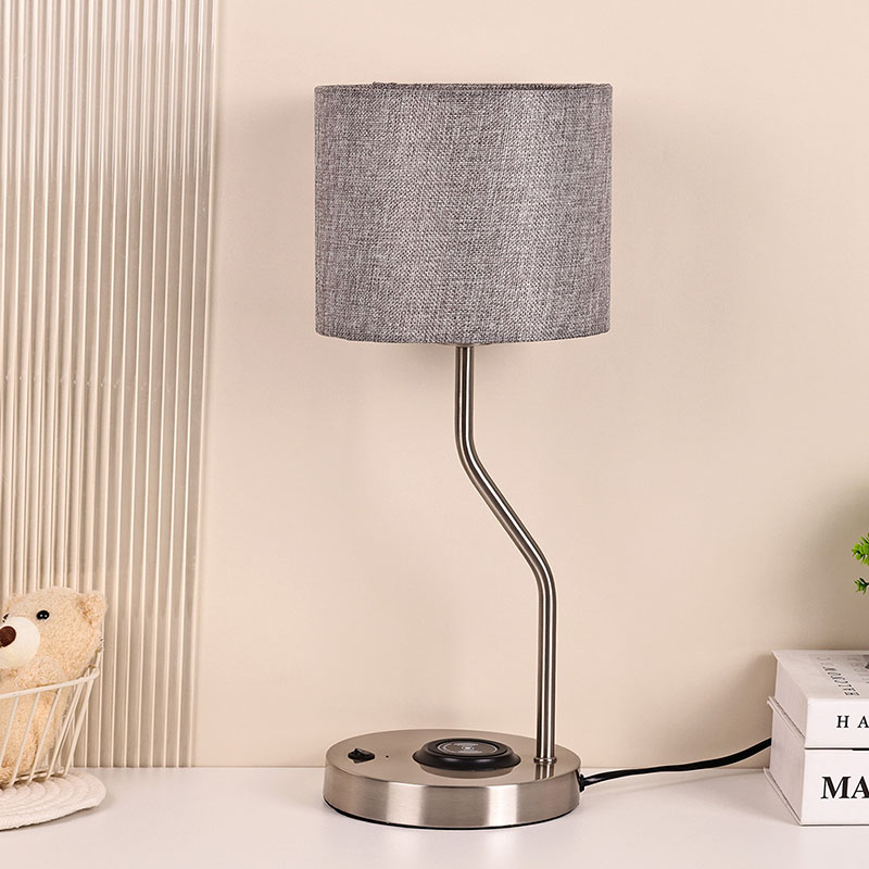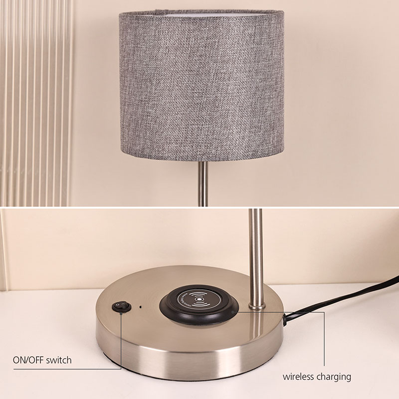 வயர்லெஸ் ஃபோன் சார்ஜர் மேசை விளக்கு துணி நிழலுடன் 5V1A மின்னழுத்த வயர்லெஸ் சார்ஜர் விளக்கு உள்ளது